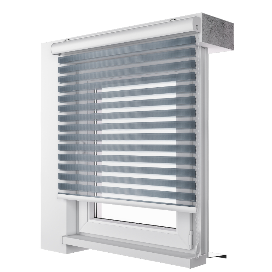 Roletky DEN a NOC, jsou vysoce funkčním prvkem se skvělými vlastnostmi a silným dekoračním potenciálem. Roletky fungují na principu dvou překrývajících se vrstev látky, jež je tvořena dvěma druhy textilií. Každá vrstva je jiná – jedná je tvořena průsvitnou a druhá neprůsvitnou textilií. Tyto dvě látky se střídají v pruzích, což vám umožňuje vybrat si mezi režimem DEN, tedy úplným odtemněním prostoru a mezi režimem NOC, kdy si nastavíte maximální zastínění. V druhém případě na sebe pruhy látky perfektně navazují, což vytvoří požadovaný efekt. Lze samozřejmě nastavit také částečné zastínění, kdy můžete propustnost světla nastavit podle svých momentálních požadavků.